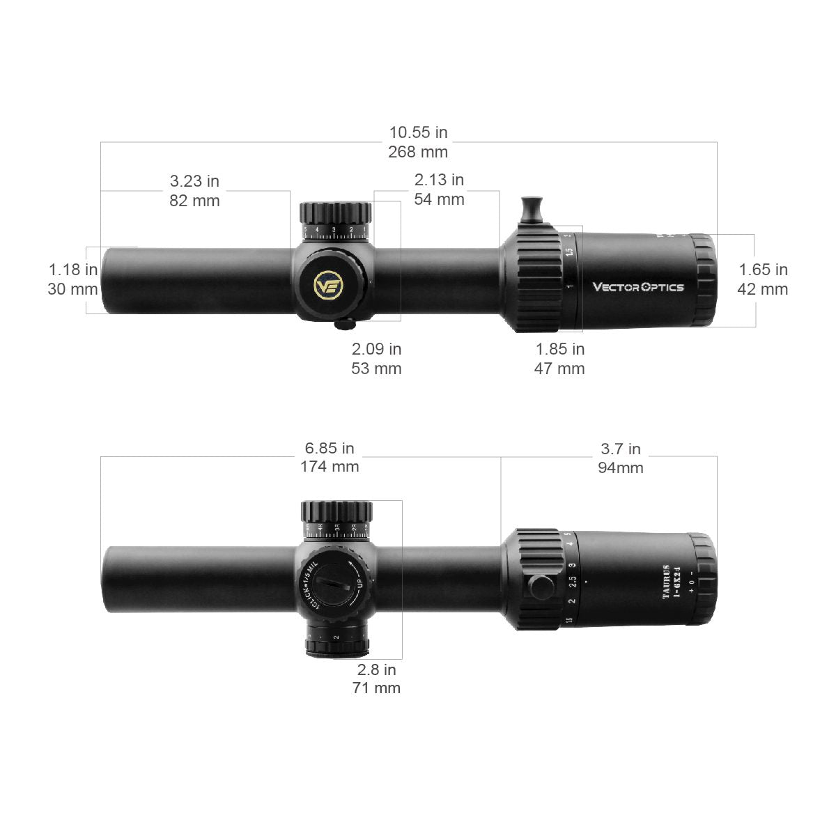 · First Focal Plane Scope, 30mm Monotube Made of 6061 T6.