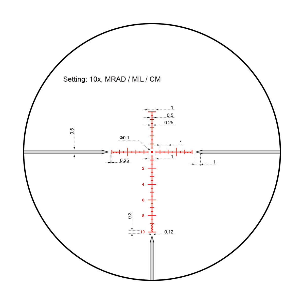 · Zero-Stop Turret System, 1/10 MIL 1cm 0.1 MRAD Adjust, 30mm Monotube.