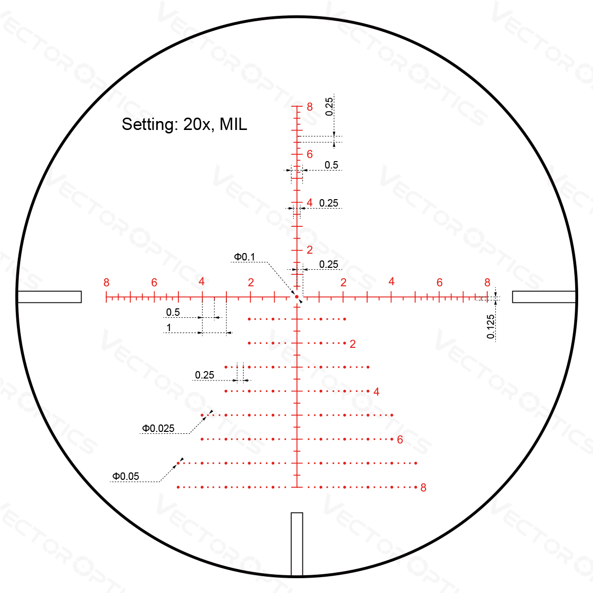 · VCT-20A Etched Glass Illuminated Reticle to Compensate for Bullet Drop, Ensuring Precise Shooting and Ideal for Competition.
