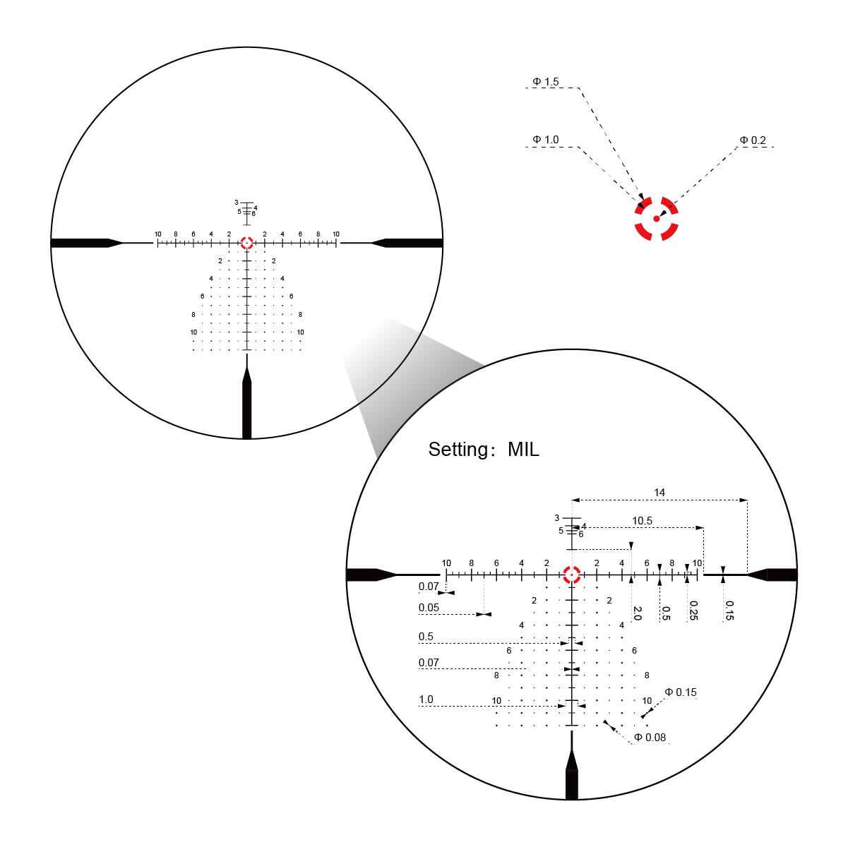 • VET-CTR MIL Dot Reticle 1x for Quick Target Acquisition & 10x for Precise Mountain Hunting