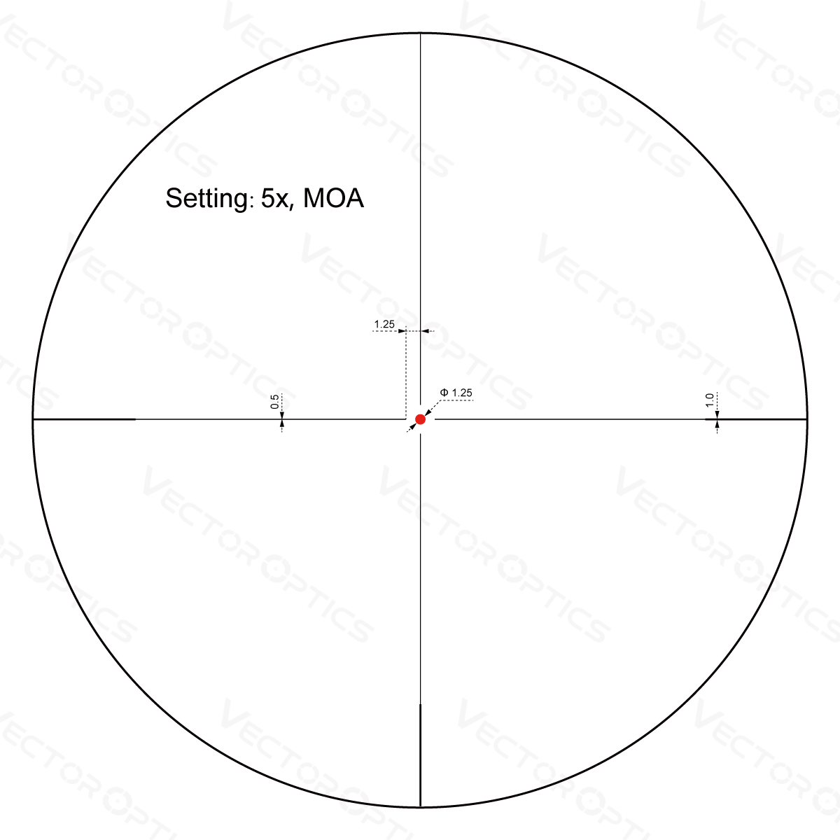 · Etched Glass VFD-2 Reticle Only Center Dot lluminated, Parallax Set at 50 Yards.