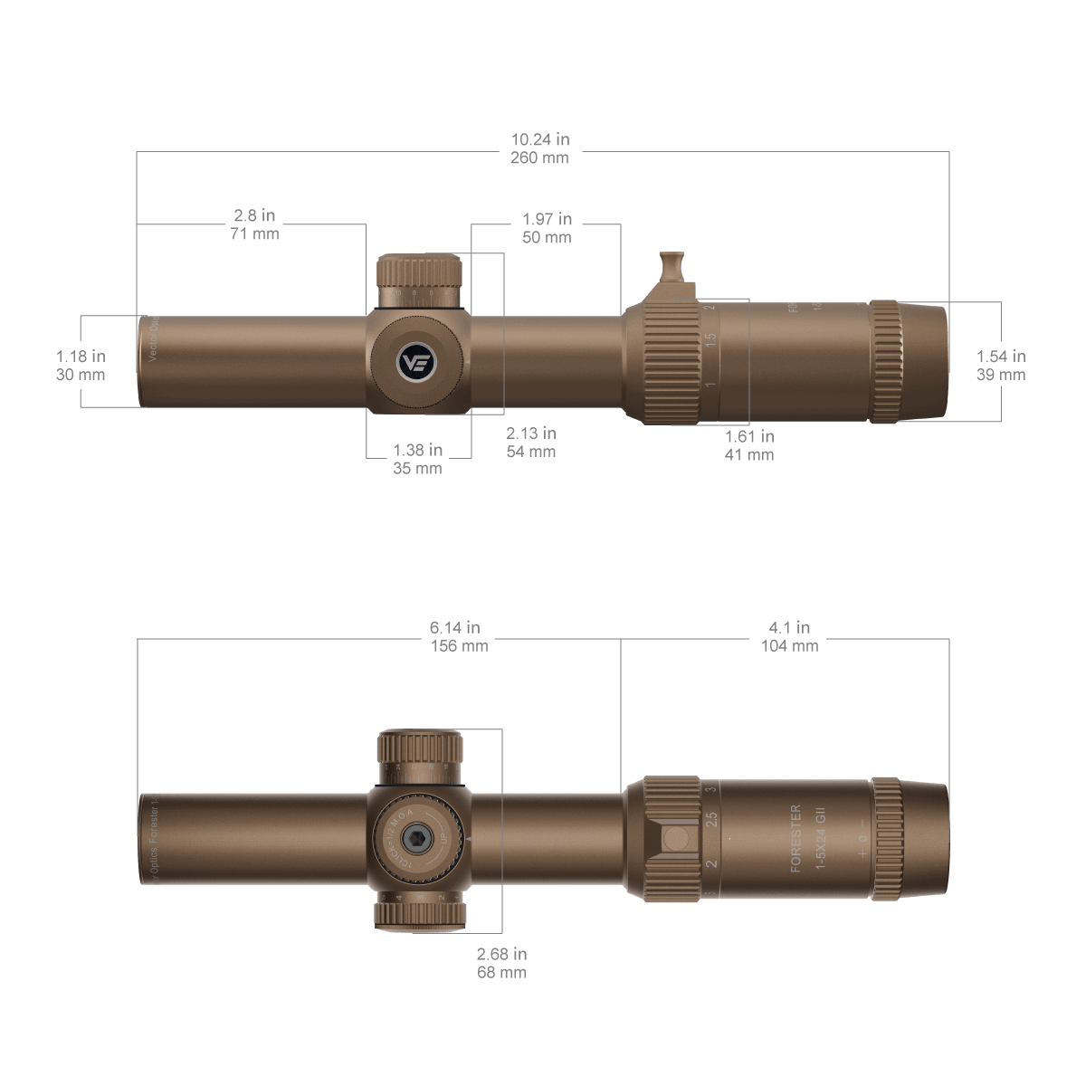 · 1/2 MOA Adjustment w/ Zero Reset & Turret Lock Features, Coyote FDE Anodizing Finish.