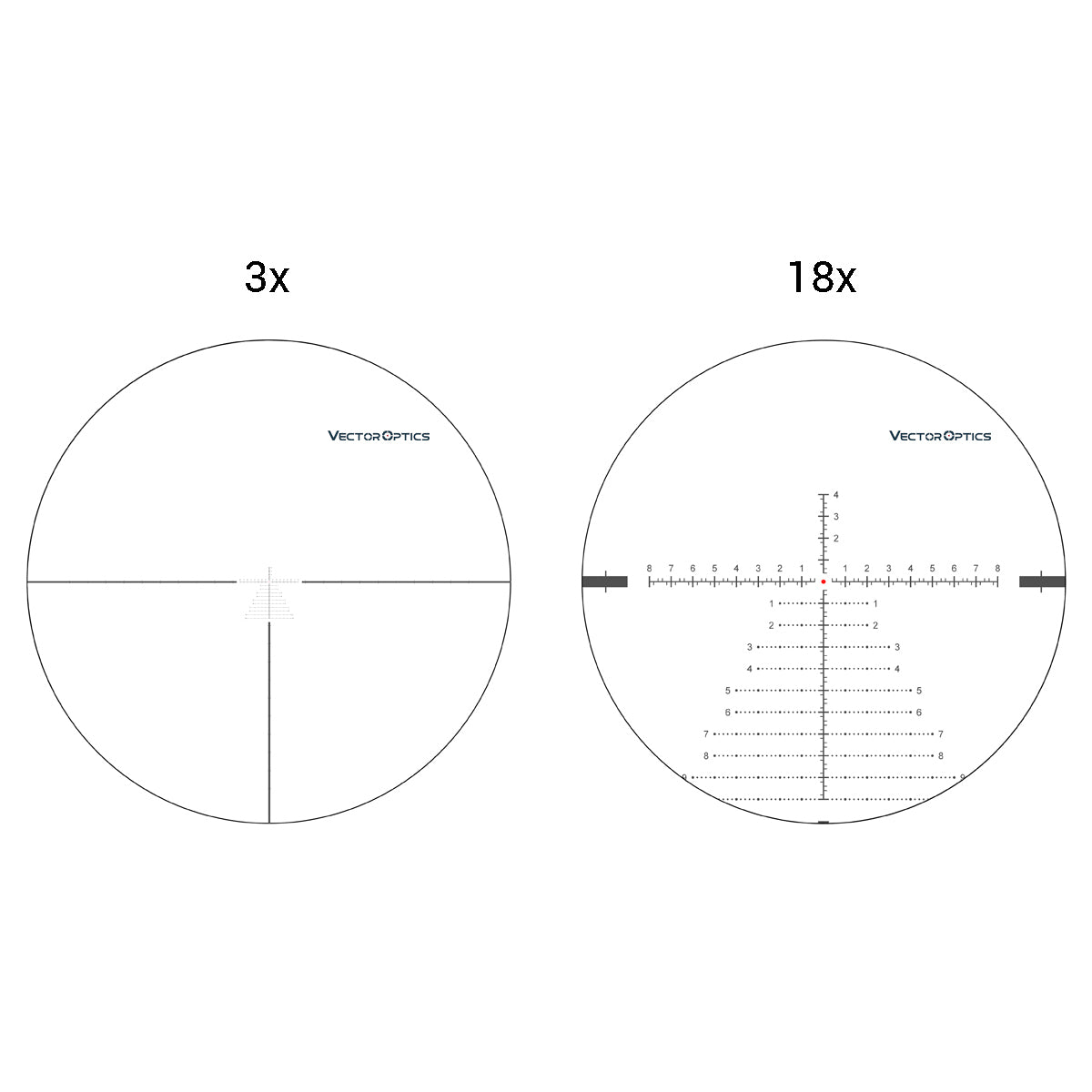 · Etched Glass VCT-34FFP Tactical MIL Reticle, Center Dot Illuminated with Digital Lines & Dots.