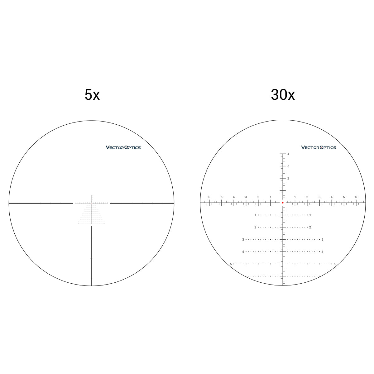· Etched Glass VCT-34FFP Tactical MIL Reticle, Center Dot Illuminated with Digital Lines & Dots.