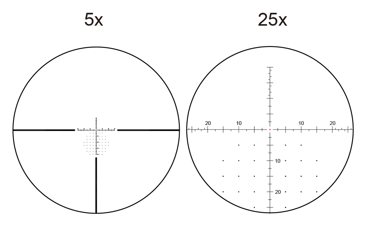 · First Focal Plane Etched Glass VSE-5 MOA Reticle for Precise Range Calculations at Long Distances.