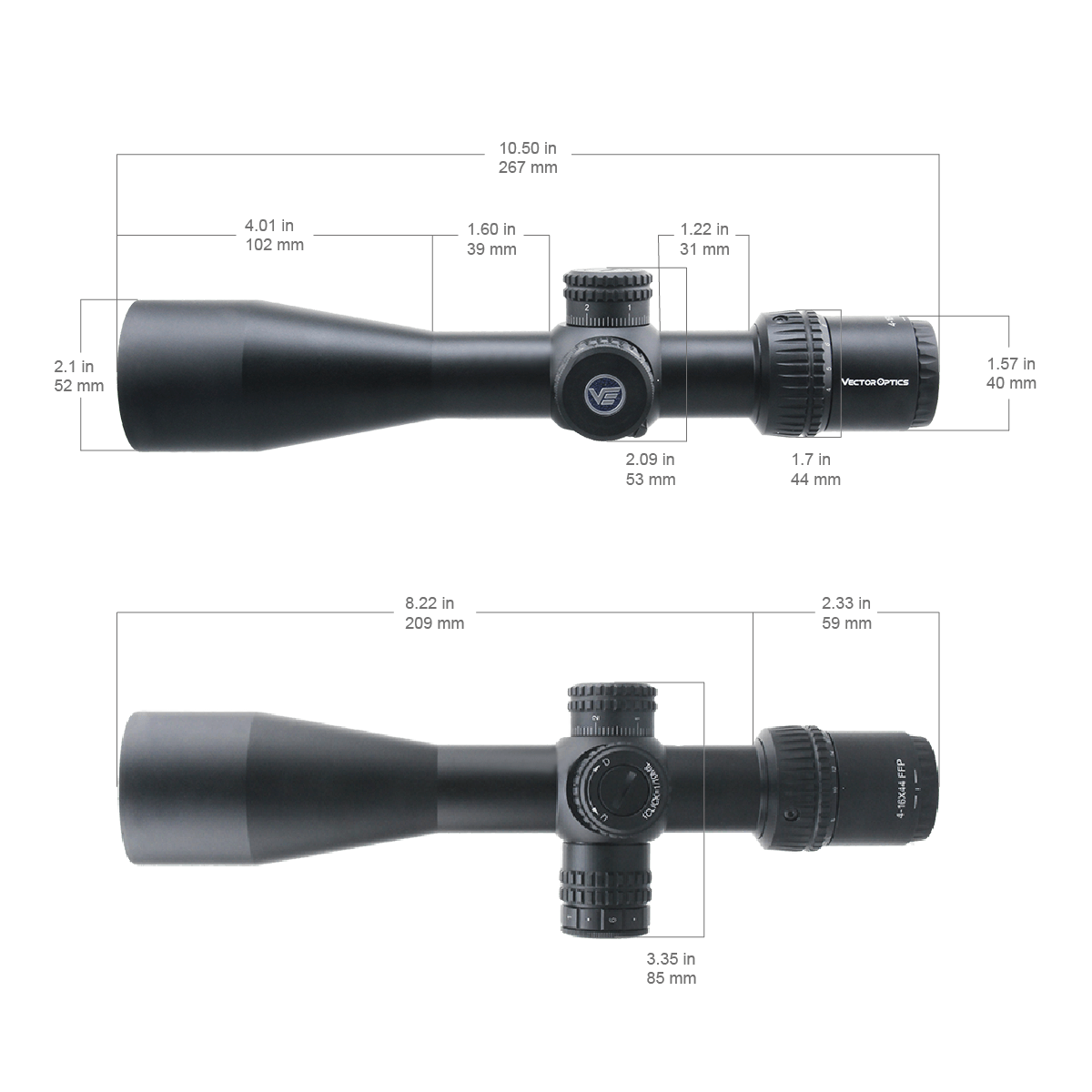 · 30mm Monotube, Ultra Short 270mm 10.3", 1/10MIL 1cm Adjust With Turret Lock System.