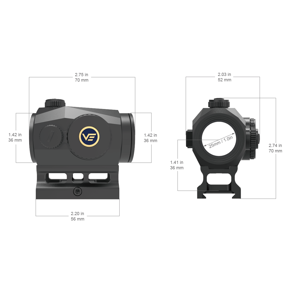 · With Low & Riser Picatinny / Weaver Mount, Absolute Co-witness, with Rubber Lens Cap.