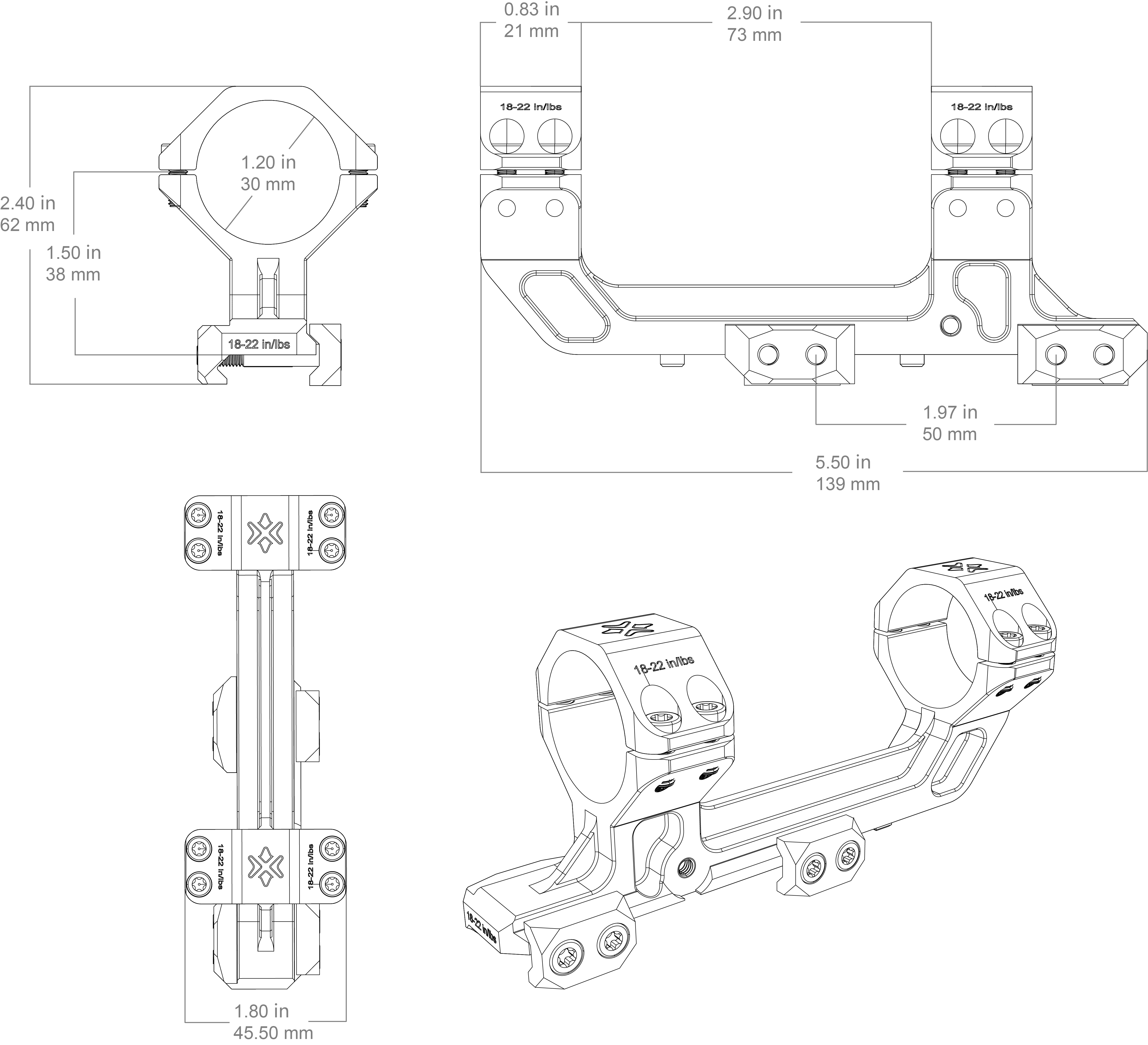 | Central Height | 38 mm / 1.5 in (Bottom to Center) |
